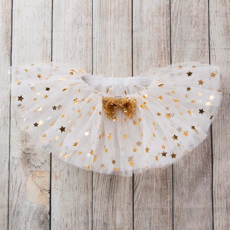 mini τουτού με χρυσά αστέρια και φιόγκο συνδυασμένο με ασορτί κορδέλα