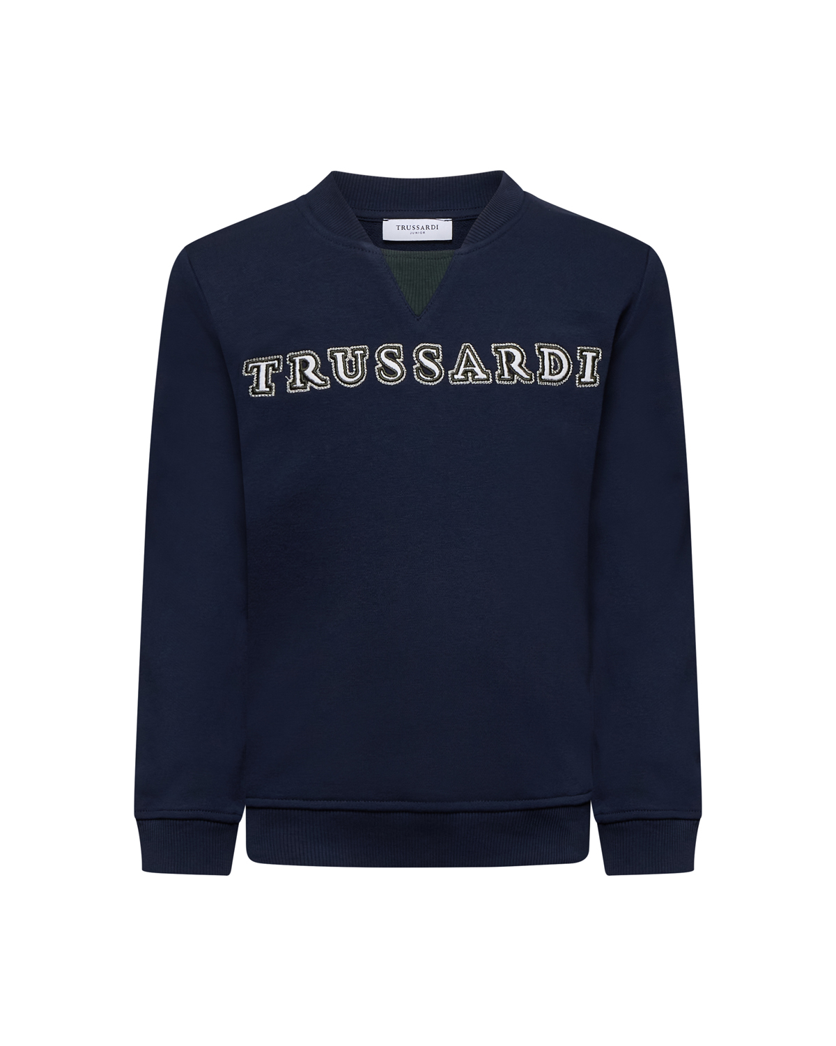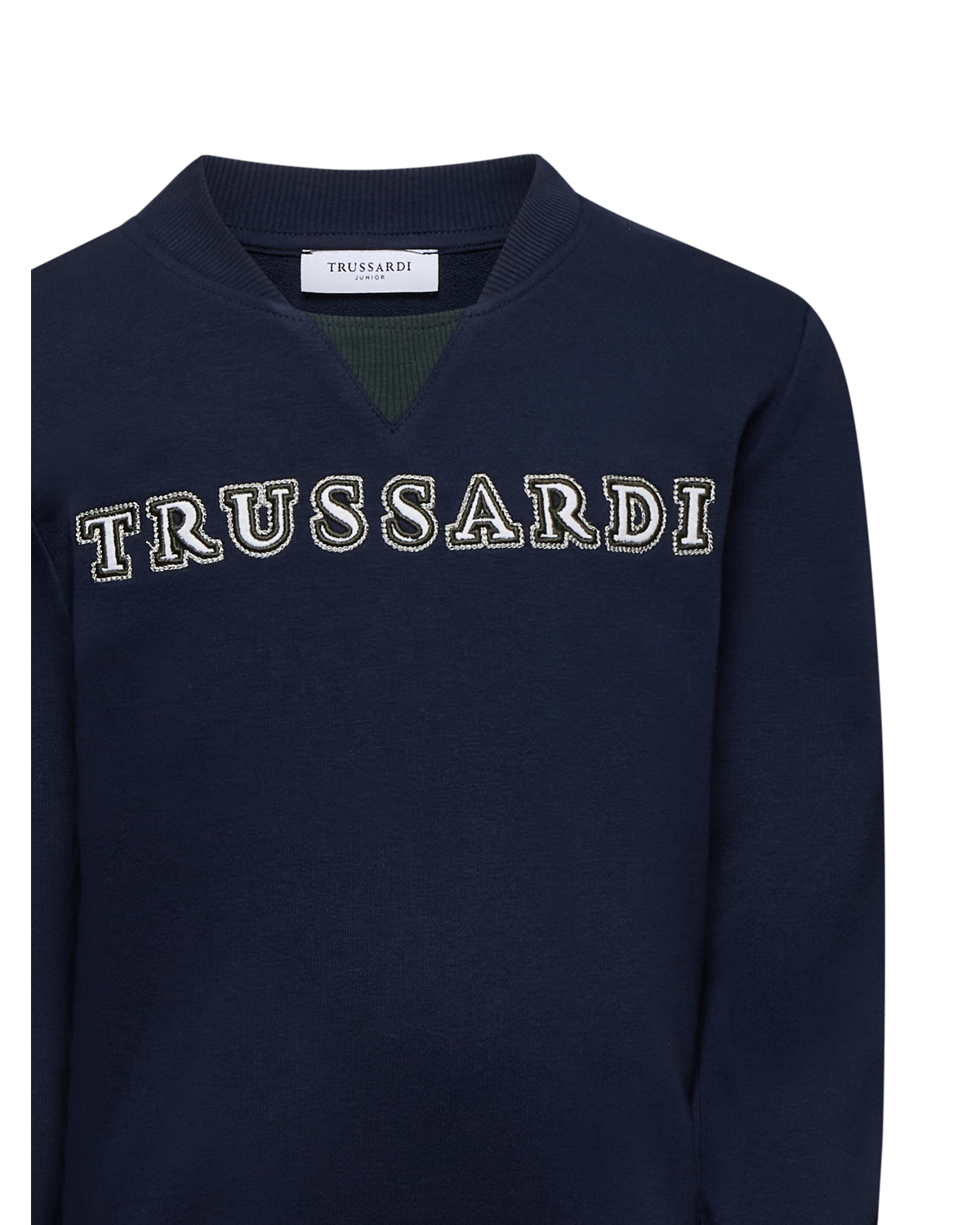 Μπλε φούτερ Trussardi Junior με ανάγλυφο λογότυπο στο στήθος.